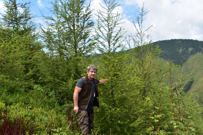 Odborný lesný hospodár Ing. Róbert Gombárik prezentuje výsledky lesníckej práce na obnove kalamitných plôch pri Vyšnej Boci