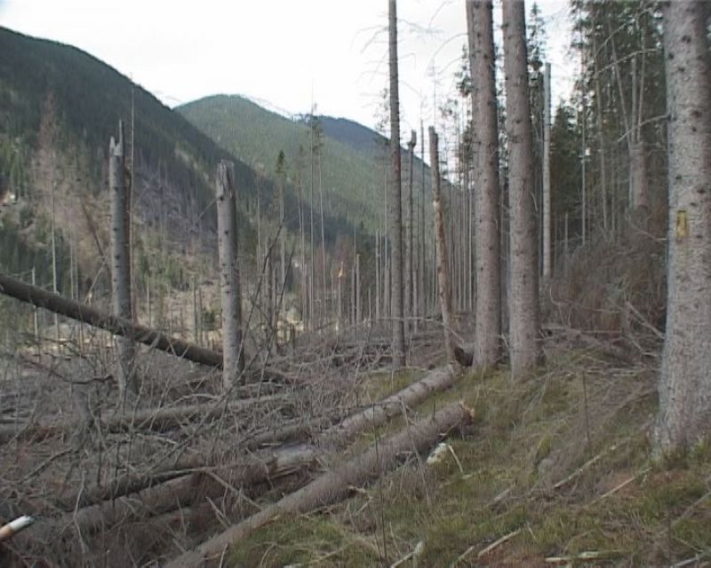 Tichá dolina po tom, ako sa ňou prehnala 19. novembra 2004 tatranská bóra