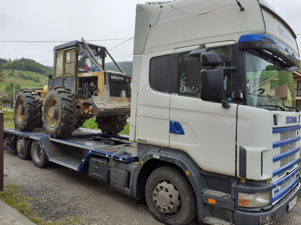 Prepravujem lesnu, stavebnu a poĺnohospodarsku techniku odtahovym specialom s najazdami a prehlbinami na vysoke stroje + navijak.