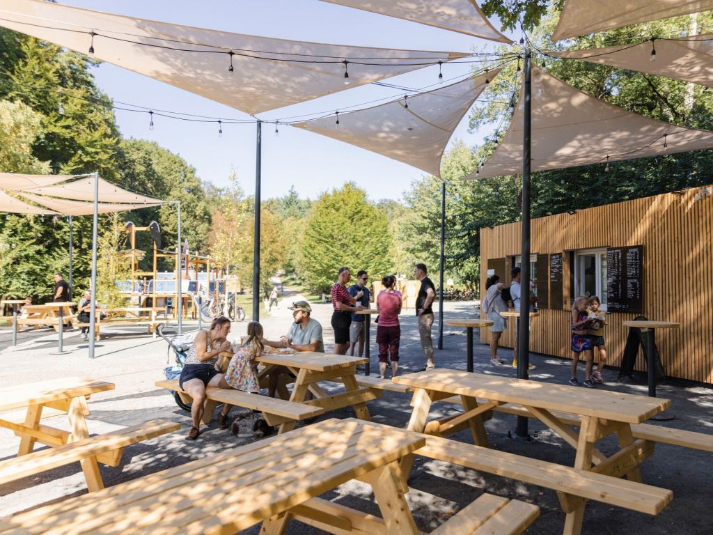 „Dôležitou zmenou je výmena asfaltu za kombináciu žulovej dlažby a vodopriepustného mlatu – riešenie, ktoré zároveň spomaľuje cyklistov v priestore pri bufete, kde vznikali nebezpečné strety s pešími. Bezbariérové toalety dostali spolu s bufetom nový drevený obklad. Zamestnanci mestských lesov vyrobili do areálu aj nové sedenie a barové stoly z lokálneho dreva.