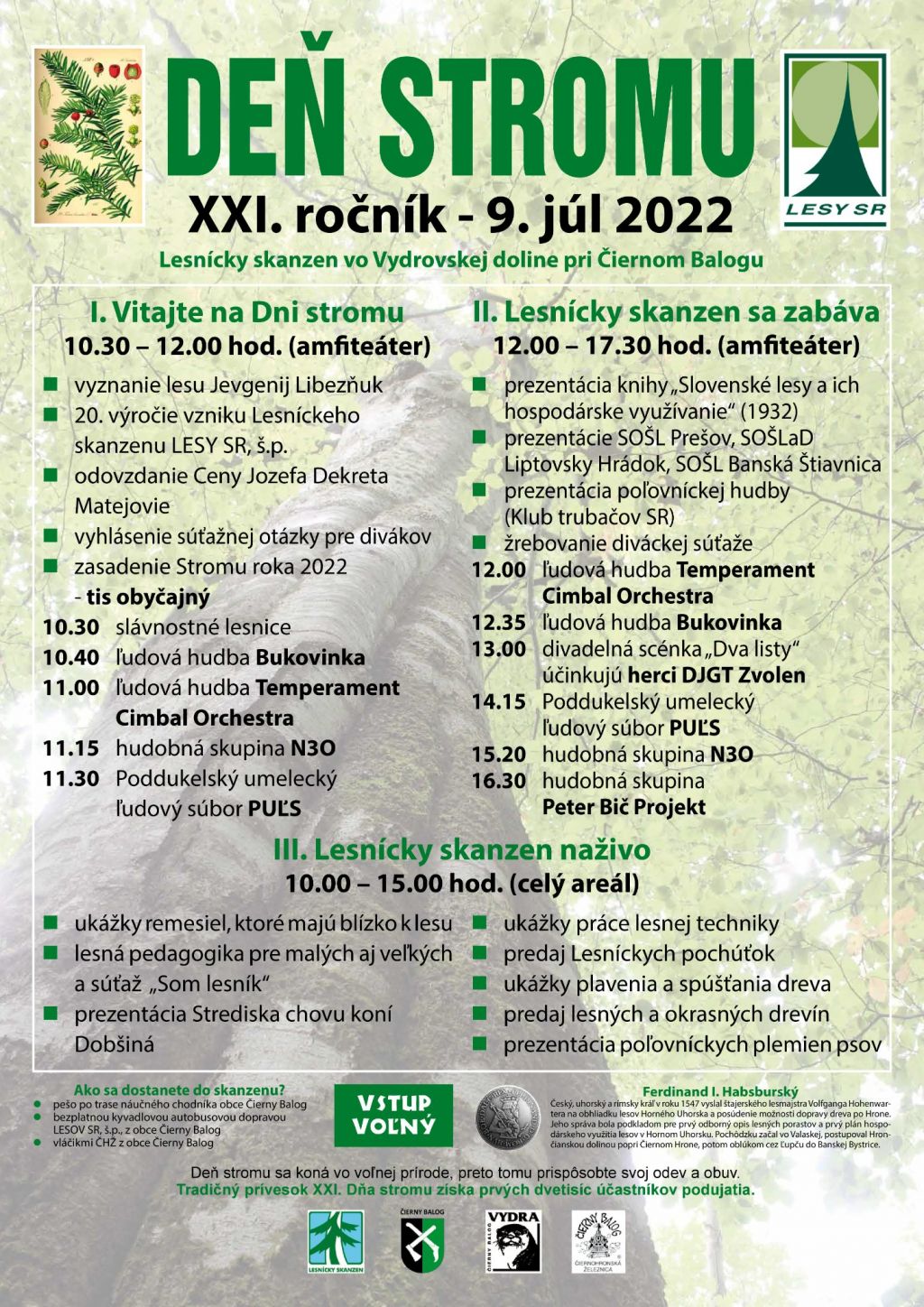LESY SR na sociálnej sieti pozývajú verejnosť na Deň stromu do Lesníckeho skanzenu vo Vydrovskej doline pri Čiernom Balogu, ktorý sa uskutoční už túto sobotu 9. júla. Vstup je voľný a prvých dvetisíc účastníkov podujatia získa tradičný prívesok XXI. ročníka Dňa stromu.