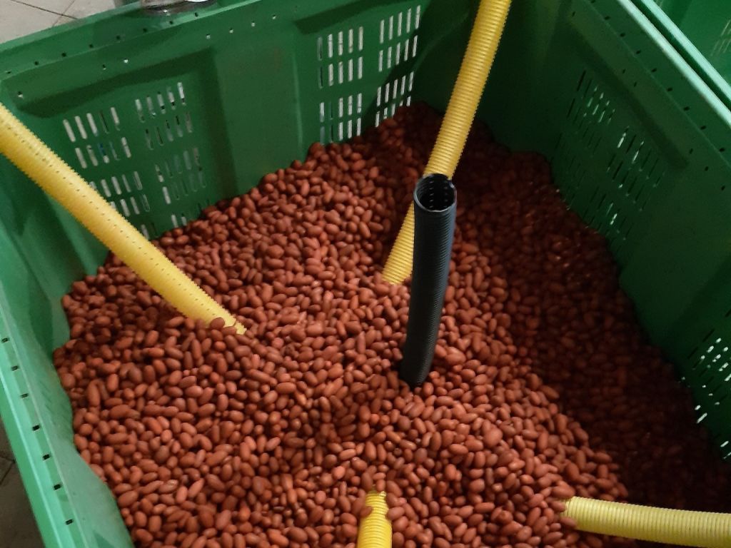 Po tomto kroku sa žalude presypú do kontajnerov, v ktorých sú zvislo umiestnené perforované ventilačné komíny, napr. z plastovej drenážnej rúry, aby semená mohli počas skladovania dýchať.