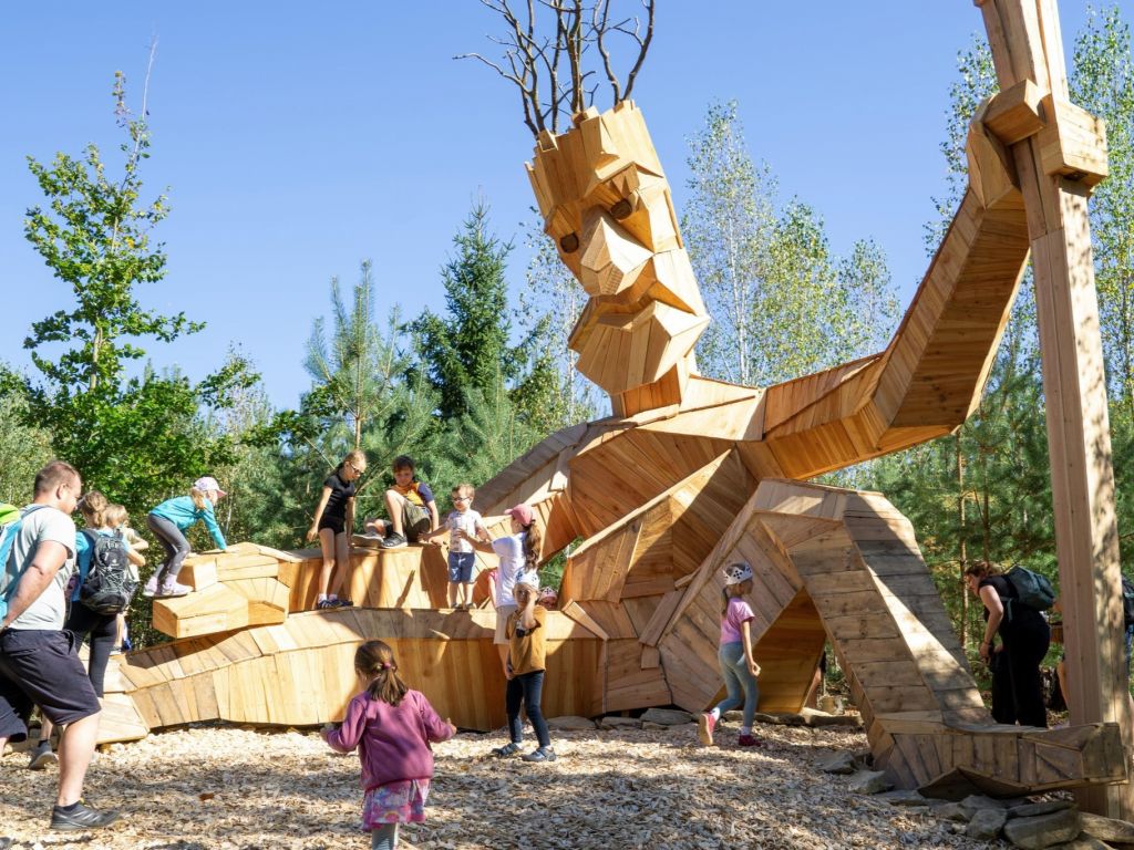 Mestské lesy Hradec Králové postavili šesť metrov vysokú sochu z dreva: Ročne ich navštívi asi milión ľudí