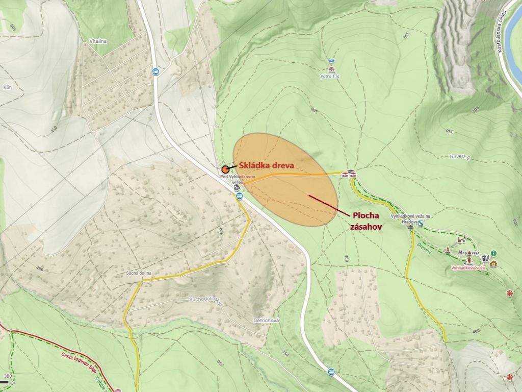 V aktuálnom statuse ďalej vysvetľujú, že kvôli sústreďovaniu drevnej hmoty bude zriadená cca 200 m severne od záchytného parkoviska plocha nevyhnutná na uskladnenie, manipuláciu a následný odvoz dreva. Zásahy v lesných porastoch budú vykonávané počas pracovných dní v čase od 7:00 do 15:00 hod., pracoviská budú v teréne označené výstražnými značkami.