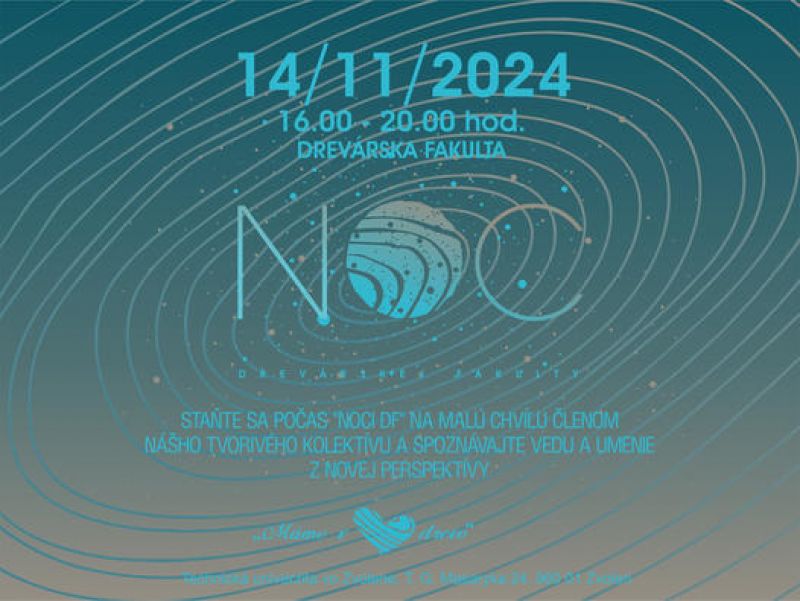 Pre všetkých záujemcov, ktorí chcú zábavnou formou spoznať vedeckovýskumnú a umeleckú prácu pedagógov, výskumníkov a dizajnérov Drevárskej fakulty Technickej univerzity vo Zvolene, je určený štvrtý ročník podujatia Noc Drevárskej fakulty, ktoré sa uskutoční 14. novembra 2024 od 16:00 do 20:00 hod., informuje Drevársky magazín na portáli Drevmag.com.