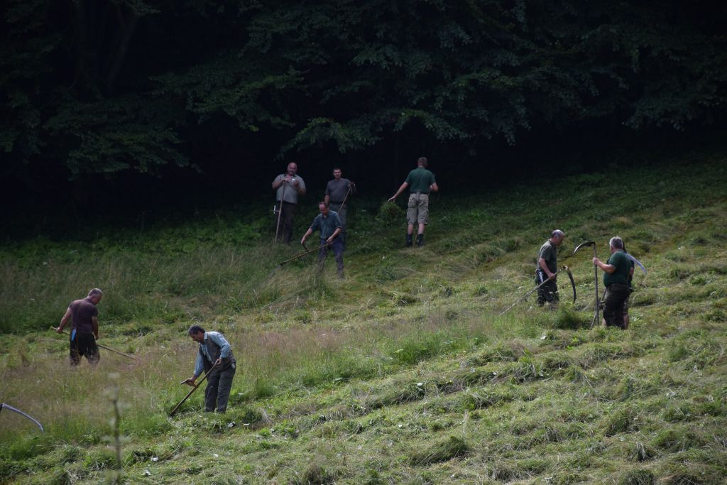 Lesníci a ochranári spoločne kosia lúku v Chránenom areáli Dolná Zálonská pod Poľanou