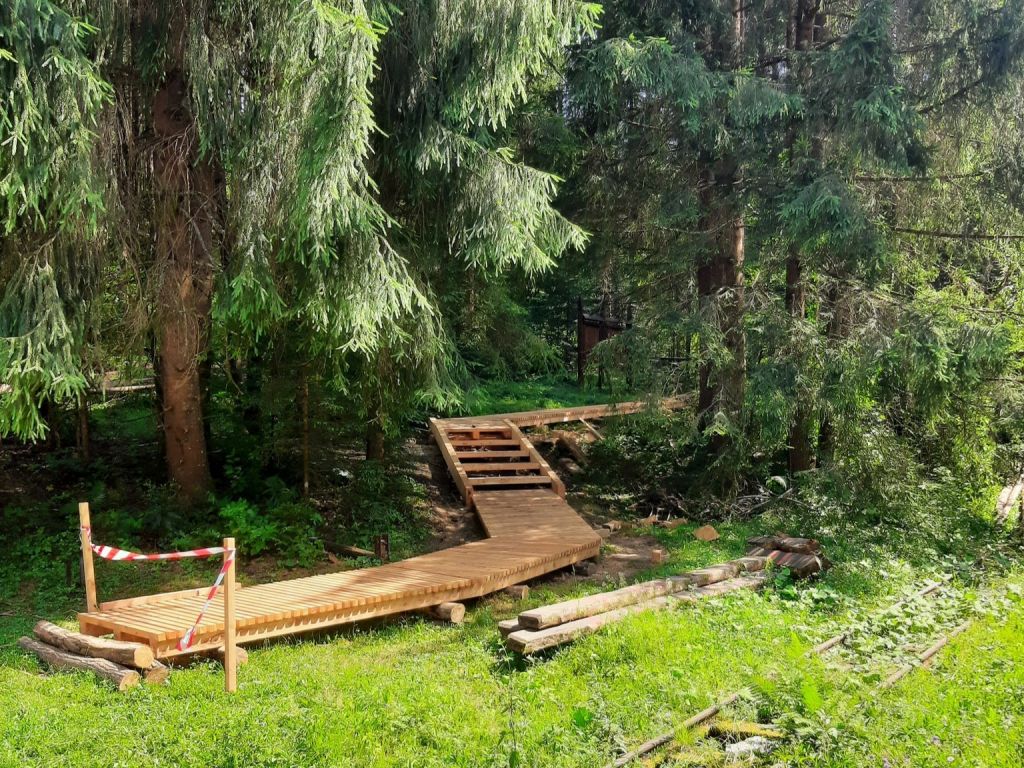 Práce na obnove turistickej infraštruktúry v Lesníckom skanzene pri Čiernom Balogu pokročili: Nové drevené prvky Chodníka lesného času