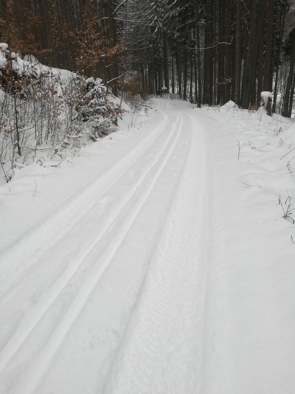 Začiatkom týždňa sme sa telefonicky spojili so styčným dôstojníkom bežkárov. Včera a dnes som bol neskutočne milo prekvapený. Vojenská cesta je zratrakovaná, bežkárska trasa od parkoviska na zjazdovke pripravená. A teraz tá pochvala: Stopa je spravená stredom cesty a pozrite si výsledok – lyžiarska stopa je funkčná, cesta je prejazdná a po stopách terénneho auta prejdú aj peší turisti.