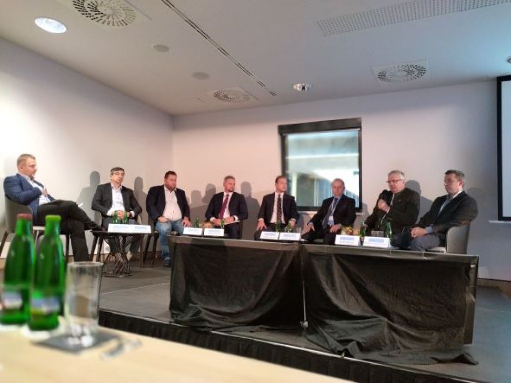 Ing. Igor Viszlai s mikrofónom počas príspevku v panelovej diskusii