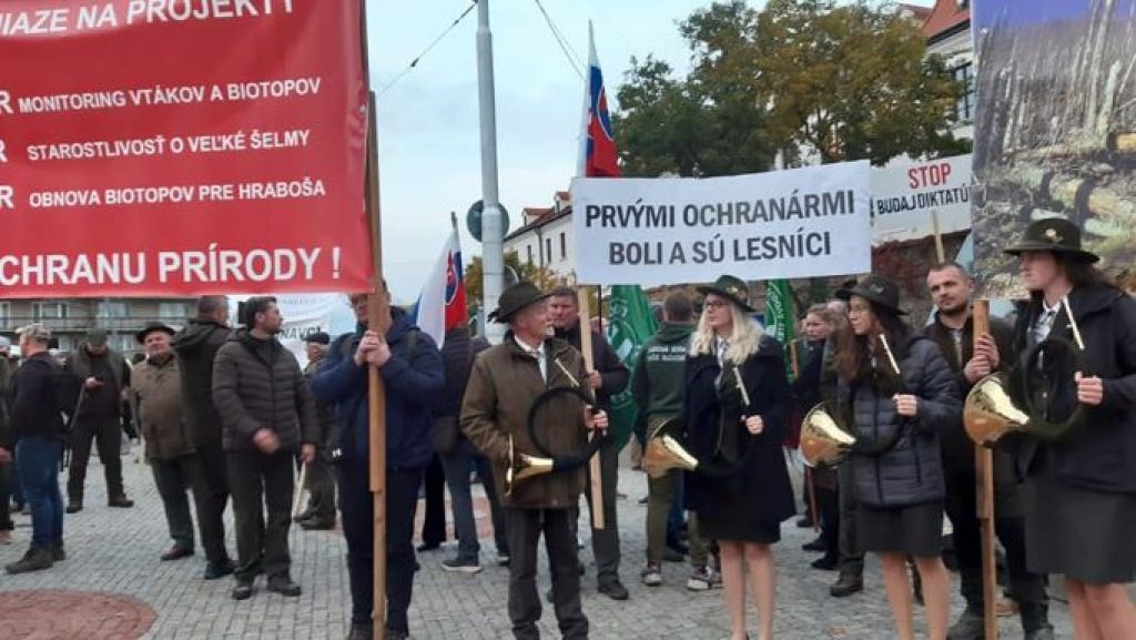 Foto z prolesníckeho zhromaždenia, ktoré sa uskutočnilo pred Národnou radou SR minulý týždeň