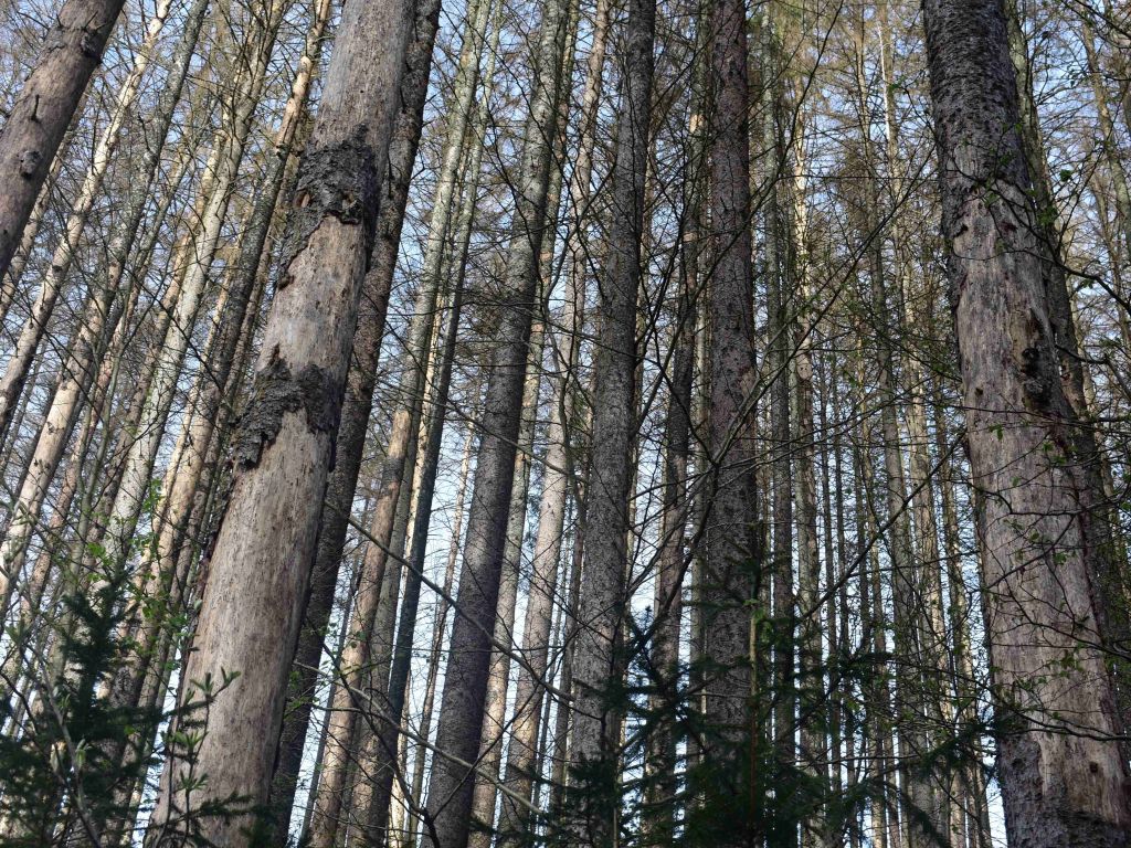 O nič lepšie to nevyzerá ani v neďalekých porastoch obhospodarovaných lesnými správami Dobroč a Čierny Hron (bývalá Lesná správa Šaling). Opäť z miesta s dostatočným výhľadom na tamojšie smrečiny bolo názorne vidieť, že tam, kde ešte nie sú holiny po spracovanej kalamite, je v lesných porastoch drvivá väčšina stromov buď uschnutá alebo napadnutá lykožrútmi. Sucháre a nahnedlé koruny ihličnanov zaberajú neuveriteľne rozsiahle plochy.