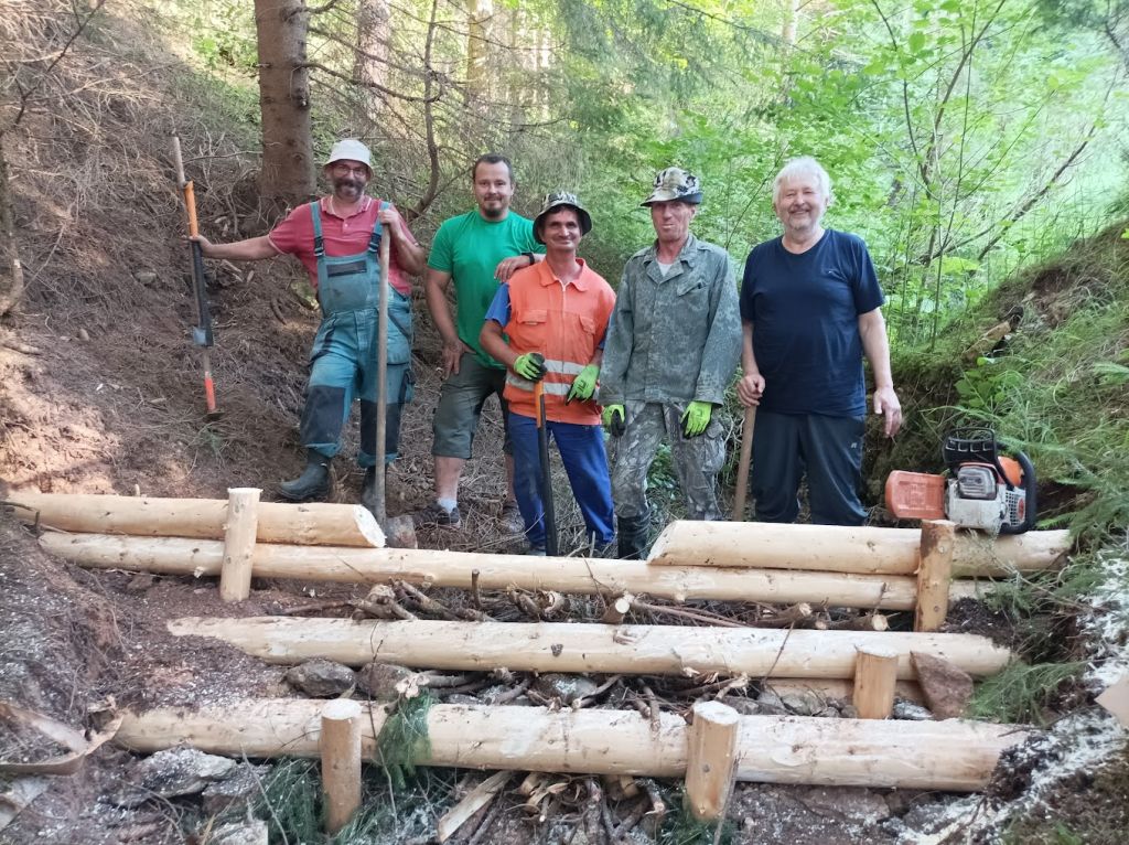 Michal Kravčík (vpravo) pri výstavbe prehrádzky na zadržiavanie dažďovej vody v lese