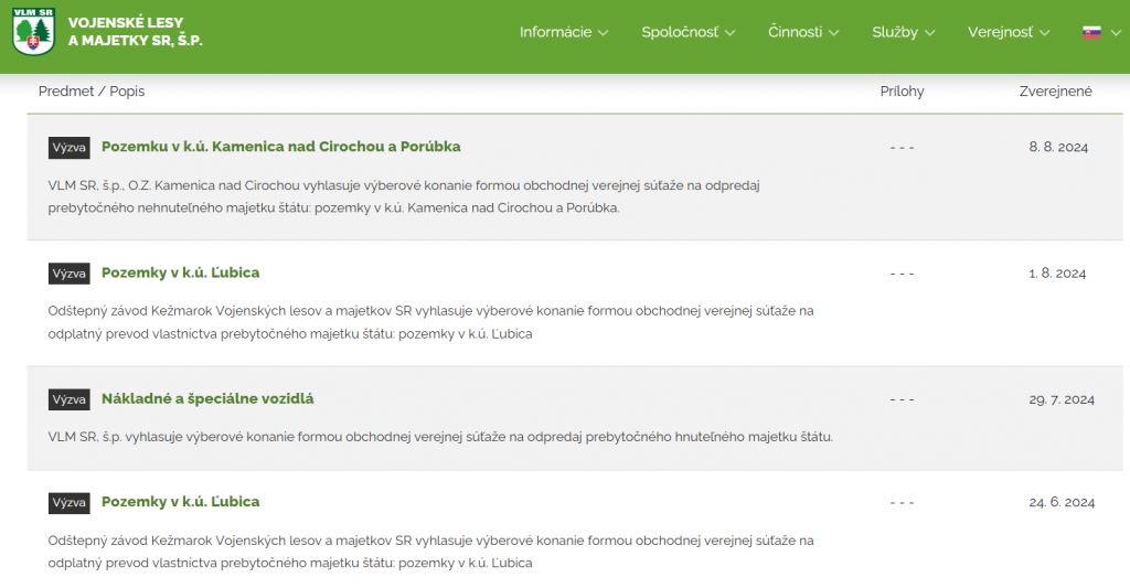 Vedenie vojenských lesov s tým súhlasilo a rozhodlo o predaji prebytočného majetku. Výber záujemcu o predmetný majetok sa realizoval formou obchodnej verejnej súťaže, ktorej vyhodnotenie sa uskutočnilo 10. mája 2024,“ uvádza portál SITA WebNoviny.