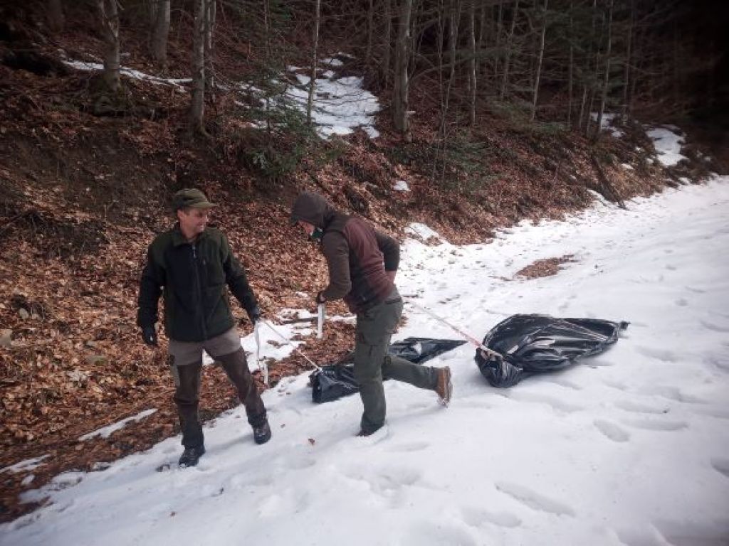 Odstraňovanie uhynutých diviakov minulú zimu v Čergovskom pohorí