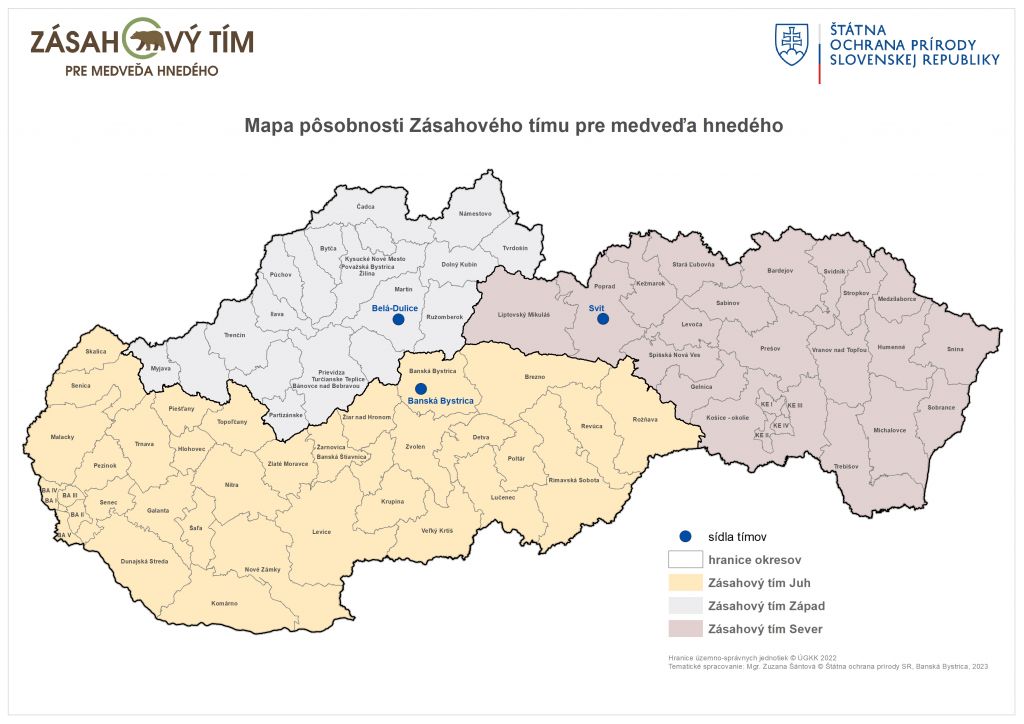 Štátna ochrana prírody Slovenskej republiky (ŠOP SR) včera prevzala budovu pre pôsobenie nových členov Zásahového tímu pre medveďa hnedého. Tím Západ bude pôsobiť z obce Belá – Dulice v okrese Martin a bude spravovať takmer celé územie Žilinského a Trenčianskeho kraja. Cieľom zriadenia nového organizačného útvaru Západ je tak pred sezónou posilniť a zefektívniť prácu Zásahového tímu. ŠOP SR o tom informovala v tlačovej správe.