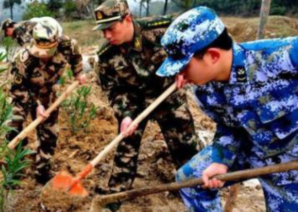 Čínski vojaci a členovia policajných síl sa zapojili do projektu zalesňovania svojej krajiny.