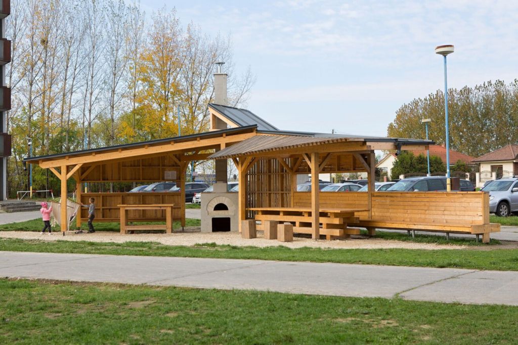 „Drevenú stavbu postavili vlani. Tvorí ju konštrukcia zo smrekového reziva. Spoje sú opracované CNC – frézami. Malý pavilón je zastrešený plechovou strechou. Stenové panely a zariadenie zo smrekového dreva namontovali priamo na stavbe. Jednoduchá konštrukcia drevenej kuchyne a malého jedálenského priestoru spĺňali kritéria zelenej stavby. Za návrh a realizáciu získali v priebehu roka viacero ocenení: BIG SEE Wood design Award 2023 v Ľubľani, IDA International Design Award Honorable Mention (Čestné uznanie) v Los Angeles, LOOP Design Awards 2023 – nominácia na People´s Choice Awards 2023 a LOOP Design Awards 2023 – ocenenia v rámci Social Architecture,“ píše Drevársky magazín.