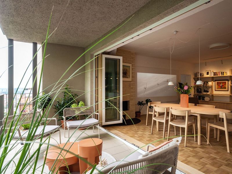 Víťazom je Byt s terasou autorského kolektívu z ateliéru What Architects (Tomáš Krištek, Ondrej Kurek, Mária Šebová, Mária Vaňurová). Byt mladej rodiny je súčasťou citlivo zrekonštruovaného bytového domu zo 70. rokov. Priestorové, materiálové a farebné riešenie interiéru nadväzuje na pôvodnú architektúru domu. Otvorením pôvodnej dispozície sa kuchyňa stala súčasťou spoločenského priestoru, vďaka čomu sa výhľady na mesto otvárajú už pri vstupe do bytu.