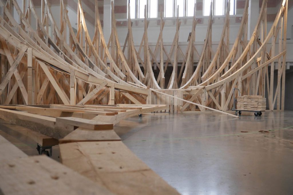 Aktuálne vydanie Drevárskeho magazínu prináša na portáli Drevmag.com informáciu o gigantickom a jedinečnom diele, poskladanom z ručne vyrezávaných dosiek do oblúka. Celá konštrukcia siaha od stropu až po podlahu. Do oblých nosníkov ju vytvarovali štyria zruční tesári. Vyrobili 48 nosníkov s dĺžkou 10 m. Spracovaním 50 m³ dreva vytvorili 500 vyrezaných dosiek. Skrátené dosky prispôsobením spojili do oblúkových tvarov. Na ich spojenie potrebovali 20 tisíc skrutiek, ktoré darovala platforma Staviame z dreva.