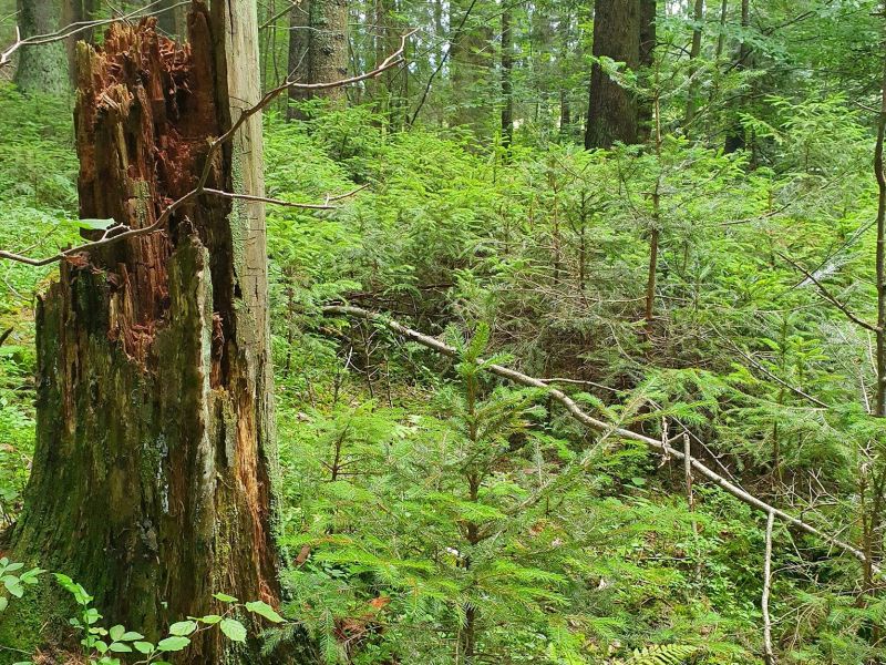 Nájdete v ňom staré ležiace rozkladajúce sa stromy i stojace "pahýle", ktoré ešte slúžia vtáčikom. Objavíte tu majestátny smrek, okolo ktorého sa ešte pred 100 rokmi pásli ovce. Ale úžasne vyzerajú aj hlúčiky machových kobercov, z ktorých vykúkajú stovky malých smrečkov. Jeden uvidíte aj priamo v strede starého práchnivejúceho pňa. Po tom, ako dedo strom vyrezal, aby uvoľnil miesto pre týchto "mlaďáskov"...