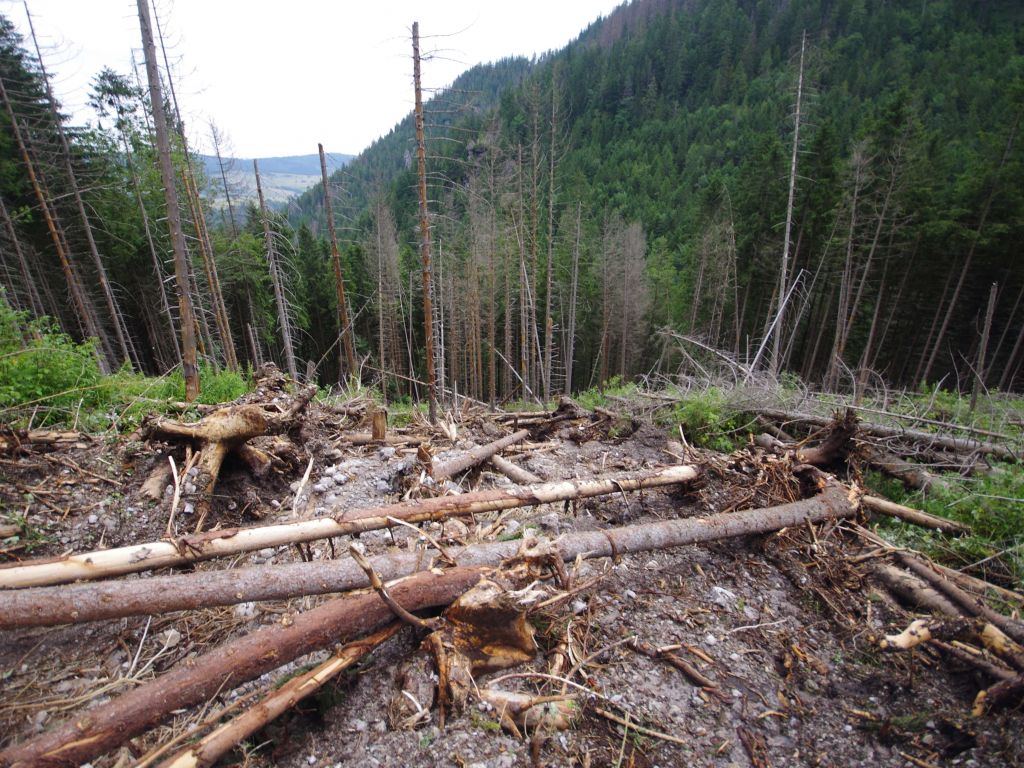 Preto sa sústredím na to, čo som videl a čo z toho vyplýva. Požiadal som Jána Slivinského, vedúceho správcu Polesia Javorina v TANAP-e, s ktorým som lokalitu navštívil. S dovolením Jána Slivinského som použil aj jeho fotografie. Na nich môžete vidieť poškodenie svahov stekajúcou dažďovou vodou, koľko mŕtveho dreva sa nachádza na miestach stekania dažďovej vody po svahoch.