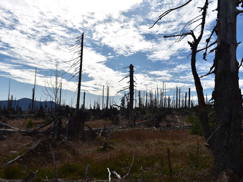 Šumava byla vyhlášena Národním parkem díky svým hlubokým lesům jako „zelená střecha Evropa“. S příchodem „ochrany přírodních procesů“ začala nechávat správa parku záměrně usychat staleté lesy žírem kůrovce. Zpočátku vědci tvrdili veřejnosti, že kůrovec nepřeletí dál než dvě stě metrů a vykácením tzv. pufračních zón budou okolní lesy uchráněny. Někteří vědci také rozstřikovali na stromy houbu Beauveria bassiana, která měla kůrovcovou kalamitu zastavit. Výsledkem experimentu jsou dnes tisíce hektarů suchých lesů a uschlé vrcholy Šumavy.