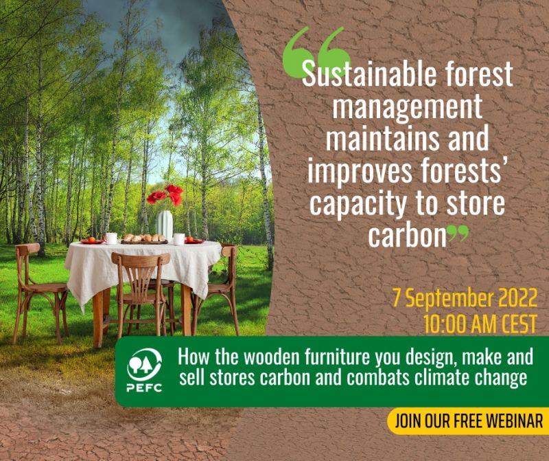 Náš nadchádzajúci webinár poskytne podrobný rozpis toho, ako lesy a drevené výrobky ukladajú uhlík. Môže byť kľúčovou stratégiou pri zmierňovaní klimatickej zmeny. Ako dizajnér nábytku, výrobca, predajca alebo používateľ môžete pomôcť v boji proti klimatickej zmene. Prvým krokom je pridať sa k nám 7. septembra a naučiť sa hrať svoju úlohu,“ informuje PEFC International.