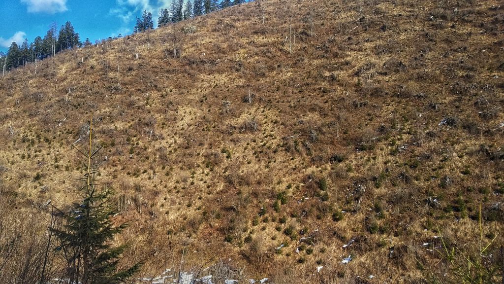Zalesnené plochy po vetrovej kalamite v lokalite Piesková