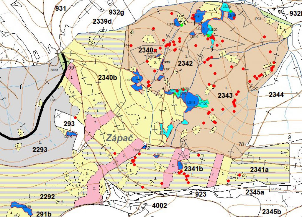 Všimnite si malé ohniská na fotkách. Znova môžete vidieť na mapke ako pribúdajú malé plôšky sústredenej kalamity a že sú to nie velikánske holé plochy, ako sa prezentuje zvučnými menami ochrany prírody. Tak isto môžete vidieť vyznačenie roztrúsenej kalamity, ktorá je takou saskou-športkou. Výberom chorých a poškodených stromov neplánovane vznikajú nové miesta pre vznik prirodzeného zmladenia a mozaikovitého svetla pre jeho vznik. Ak chceme zachovať veľa starých lesov zelených, tak je nutný aktívny prístup, nie ničnerobenie.