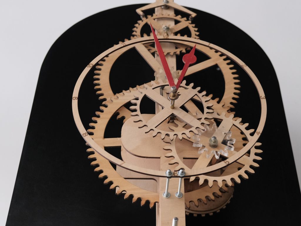 „Pri návrhu každého hodinového mechanizmu je vždy veľmi dôležitý tvar a presnosť výroby – o to viac v prípade drevených hodín, kde je pri pohybe celej hodinovej sústavy potrebné prekonať veľké trecie sily vznikajúce práve pri drevených výrobkoch. Práve riešenie tohto technického problému bolo predmetom spomenutej diplomovej práce – išlo o návrh krokového kolesa hodín, pre ktoré sa zmenil profil zuba, tvorený tromi hranami, ktorých vzájomná poloha je definovaná rôznymi uhlami sklonu, čo zabezpečuje presných chod hodín.