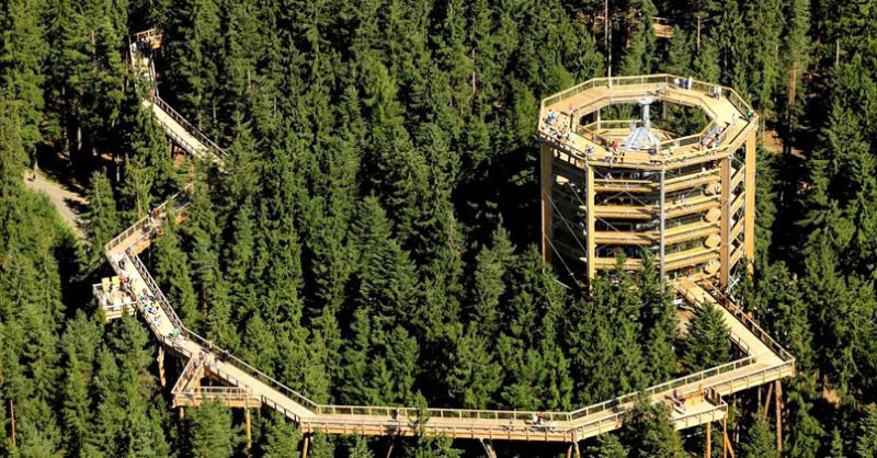 Návštevníci sa dostanú až do úrovne 32 metrov nad zemou. V tejto výške sa bude nachádzať kruhová vyhliadková plošina, ktorá je priamo na hranici Pieninského a Tatranského národného parku. Stavba je už postavená zhruba na 40 percent. Hlboko v lese, vo výške viac ako 1270 metrov nad morom, pracujú desiatky robotníkov.