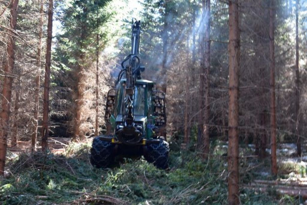 „Nacházíme se na samotné hranici přírodní rezervace Čerchovské hvozdy a kůrovce je tady hodně, jedná se o 120 let staré stromy,“ popsal situaci hajný Martin Semecký. Napadený strom se podle něj pozná podle drtinek, vypadají jako rozsypaná káva. Typický je také nasládlý zatuchlý zápach. „Pokud se viditelně loupe kůra, tak už se jedná o mrtvý strom,“ vysvětlil. Na místě se kácí stromy pomocí harvestoru, ten zvládne za den pokácet sto až sto padesát kubíků dřeva, kam se nedostane, nastoupí traktory a koně.