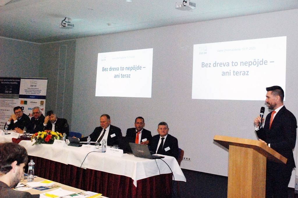 Minister Richard takáč hovorí na Valnom zhromaždení Zväzu spracovateľov dreva SR